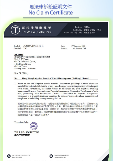 COPY RIGHT © 2026 HITECHI DEVELOPMENT (HOLDINGS) LIMITED. ALL RIGHTS RESERVED